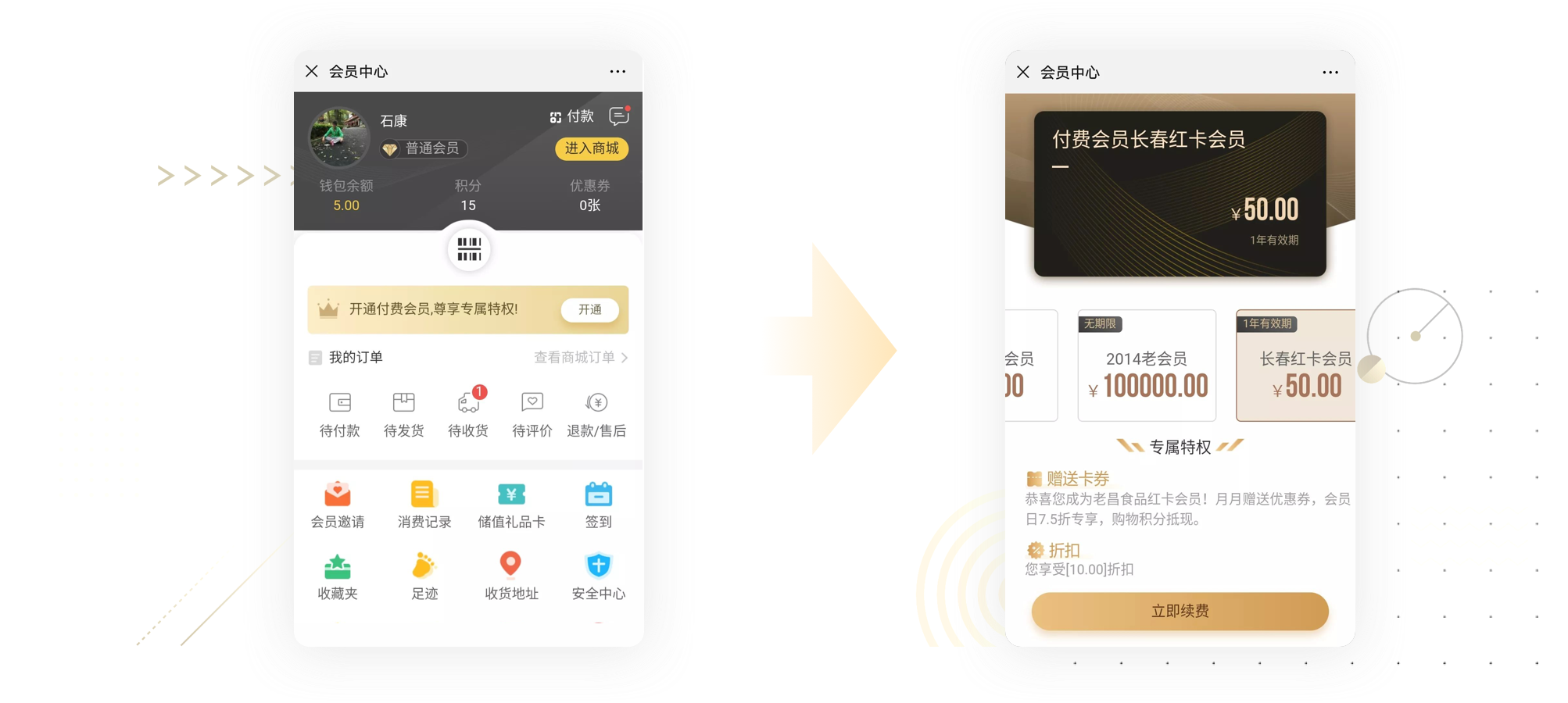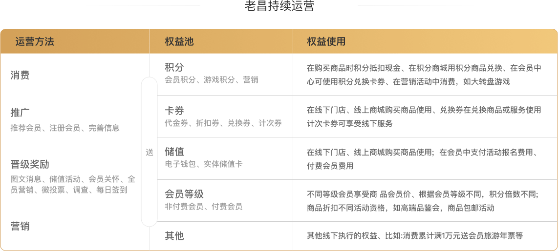 老昌食品为增加顾客黏性、深挖顾客价值,通过一定的资金门槛,识别忠诚度较高会员并提供特权服务,提高用户留存率和提升用户价值。